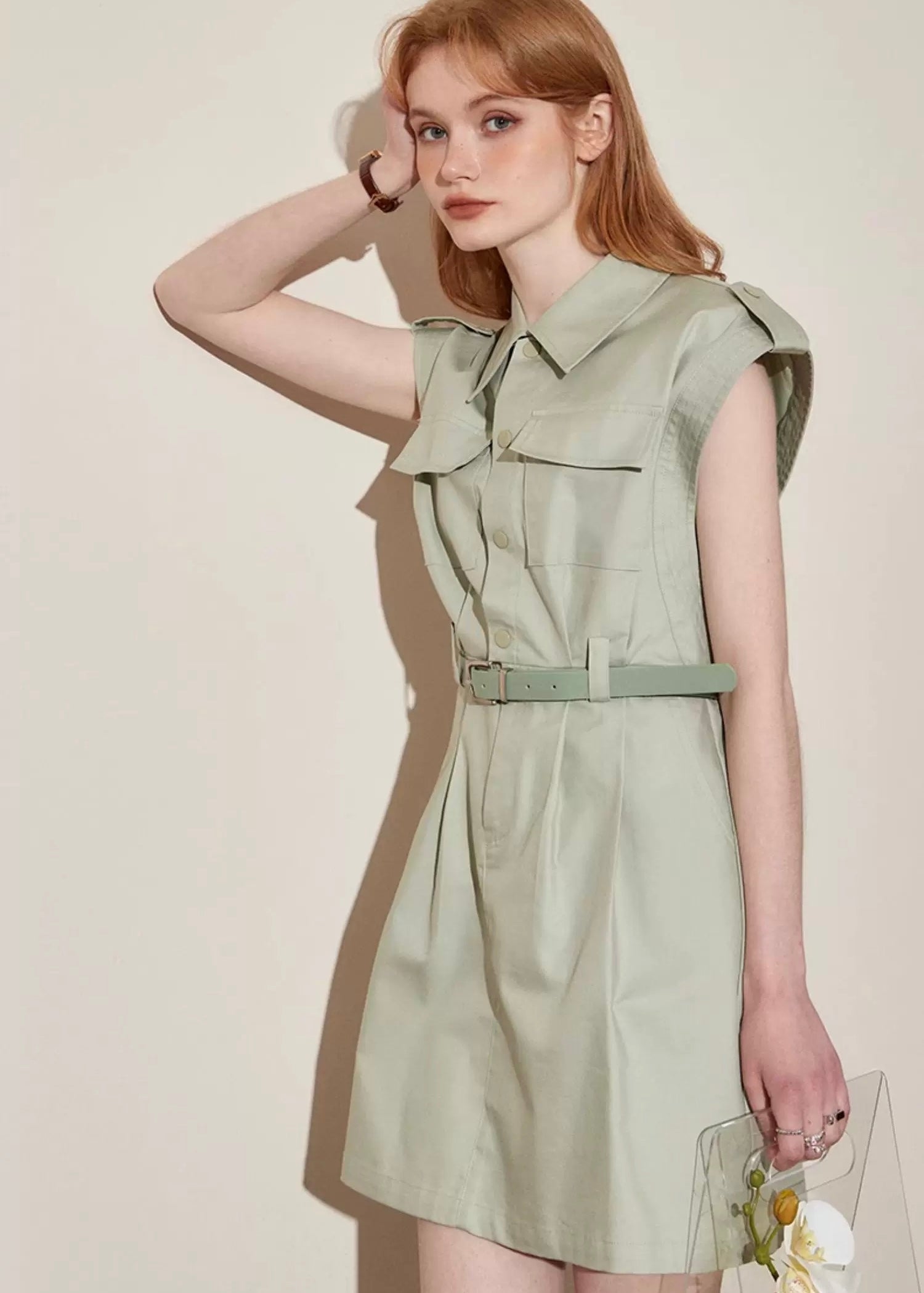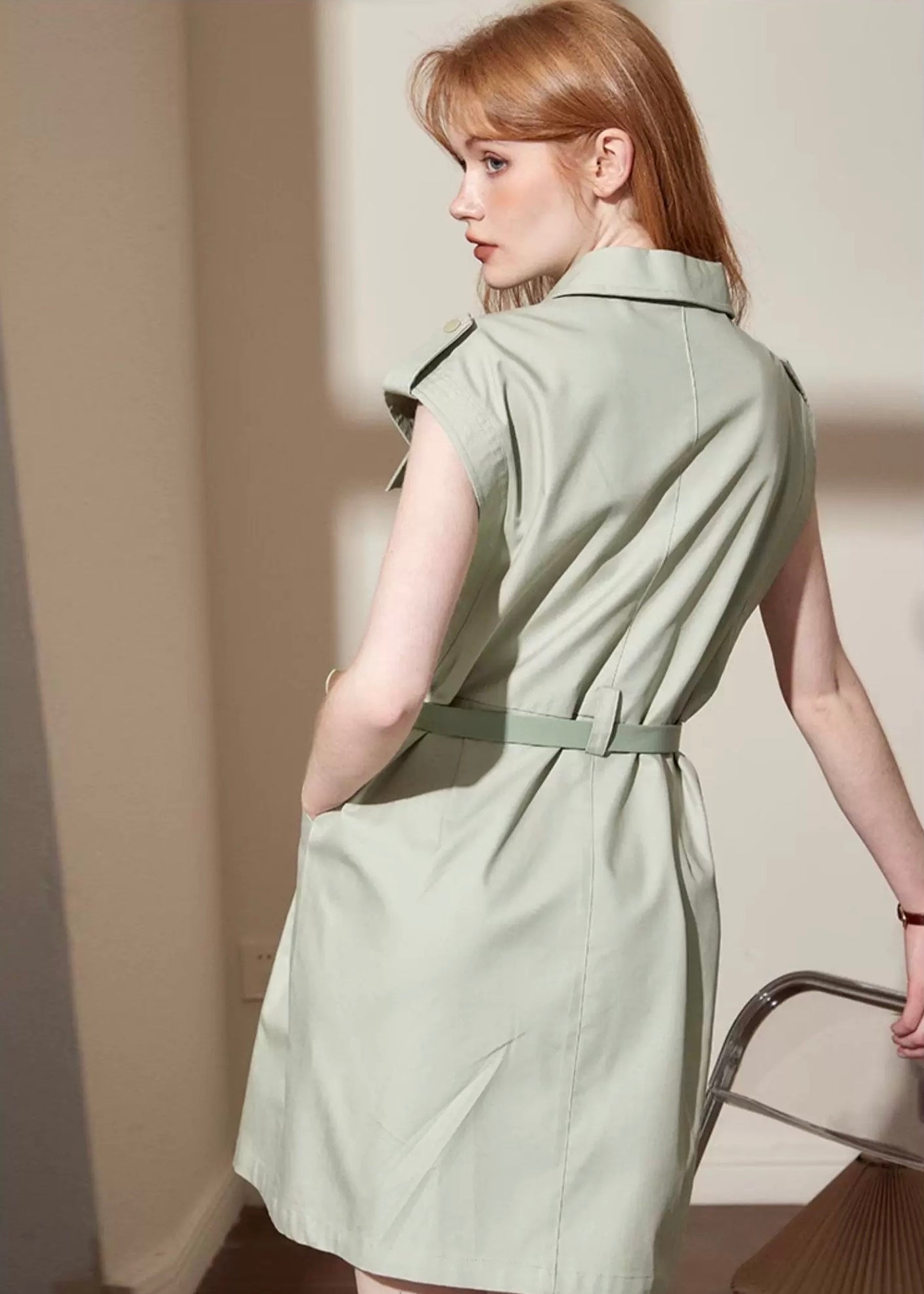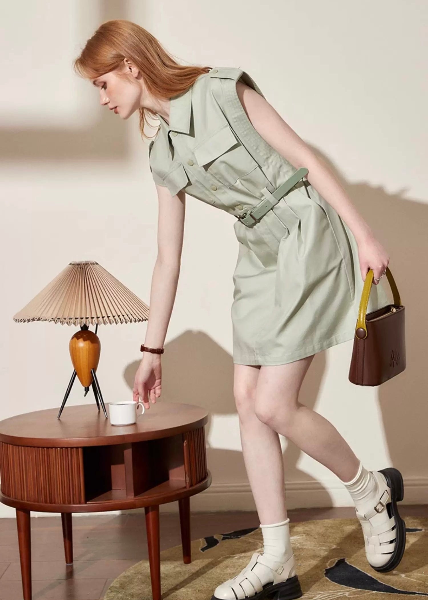肩の立体感あるフラップディテールと、同色ベルトがウエストを引き締めスタイルアップを叶えます。