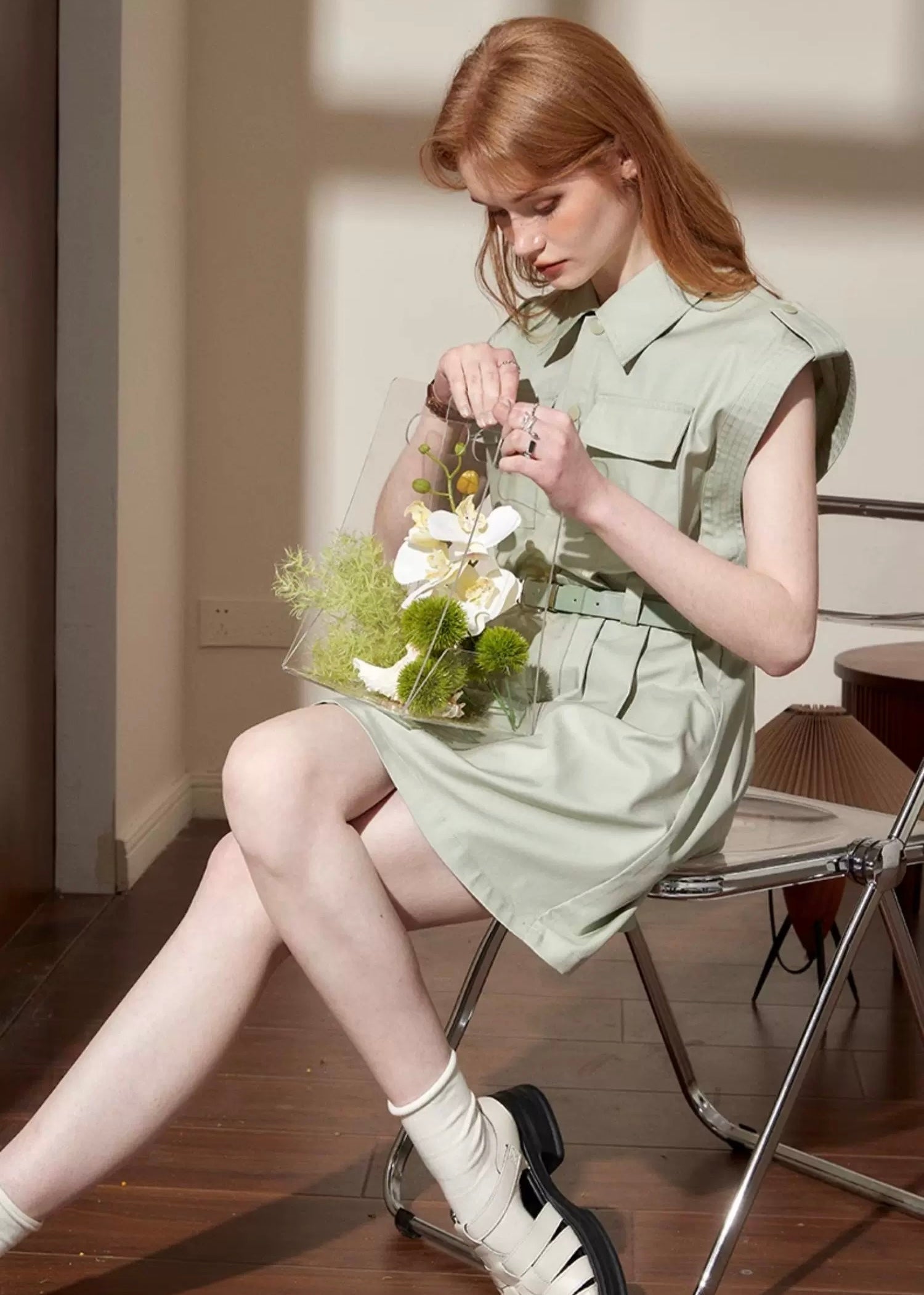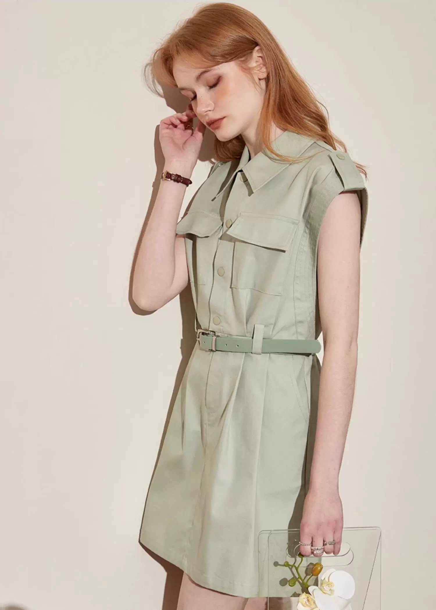クリーンな印象と程よいモード感を併せ持つユーティリティワンピース。