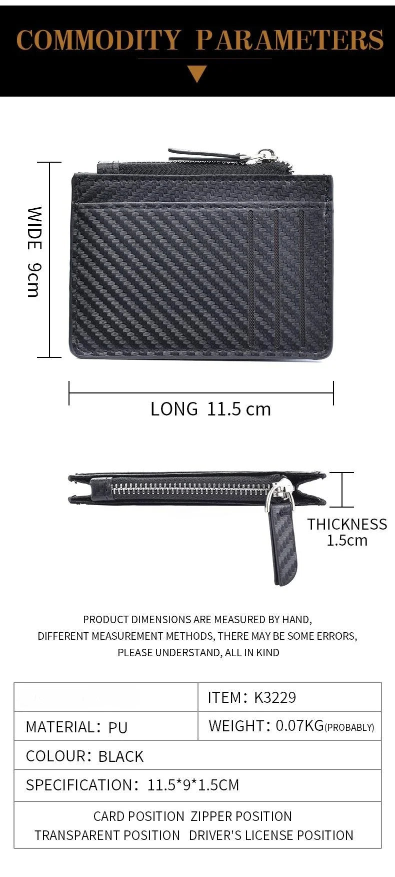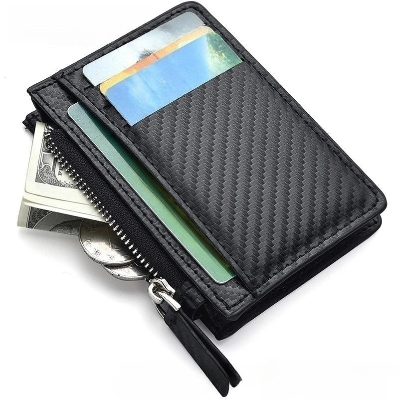 メンズ スリム ミニマリスト フロントポケットウォレット ジッパー クレジットカードホルダー ポータブルレザーウォレット