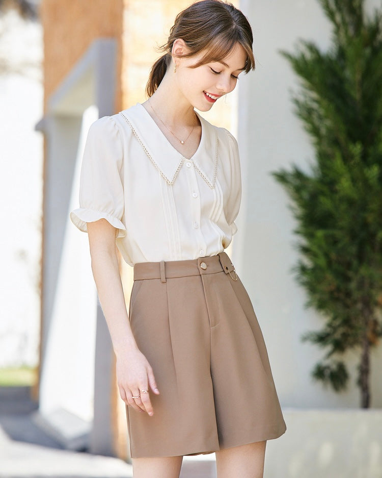 ベルトループのアシンメトリーなデザインが特徴のショートパンツです。